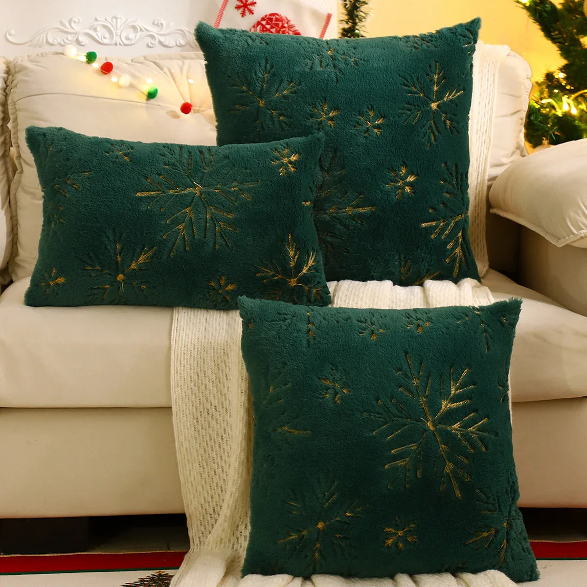 1 PC Christmas Throw Pillow Cover Plush Embroidery Snowflake Christmas Decoration Living Room