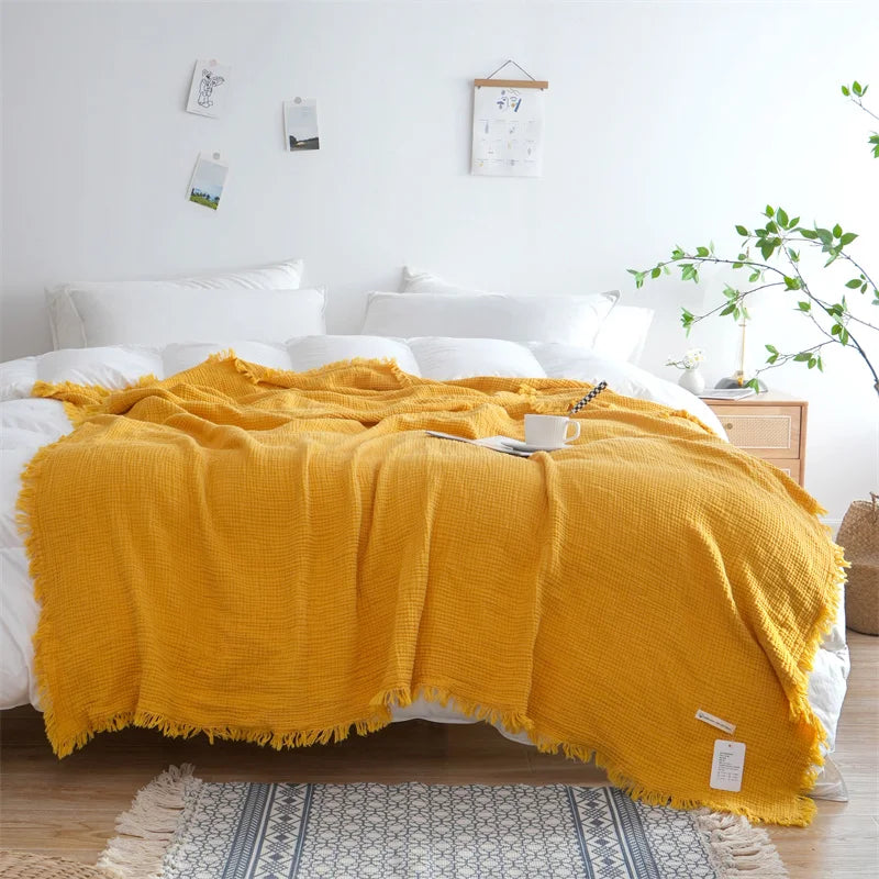 100% Cotton Blanket Yarn Dyed Shawl Tassels Style Plaid Jacquard Blankets Skin-friendly Bed Linen High Quality Gift cobertor