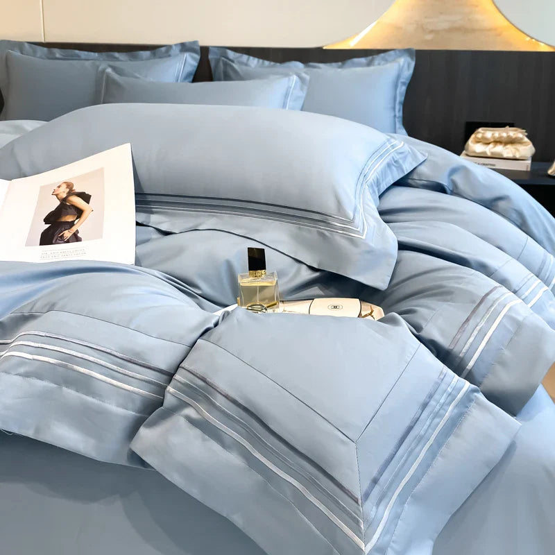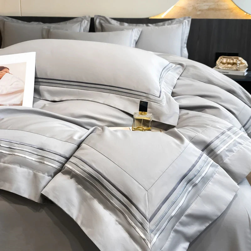 100% Cotton Luxury Hotel Style Bedding Set Queen King Size Solid Color Embroidery Duvet Cover Flat/Fitted Bed Sheet Pillowcases
