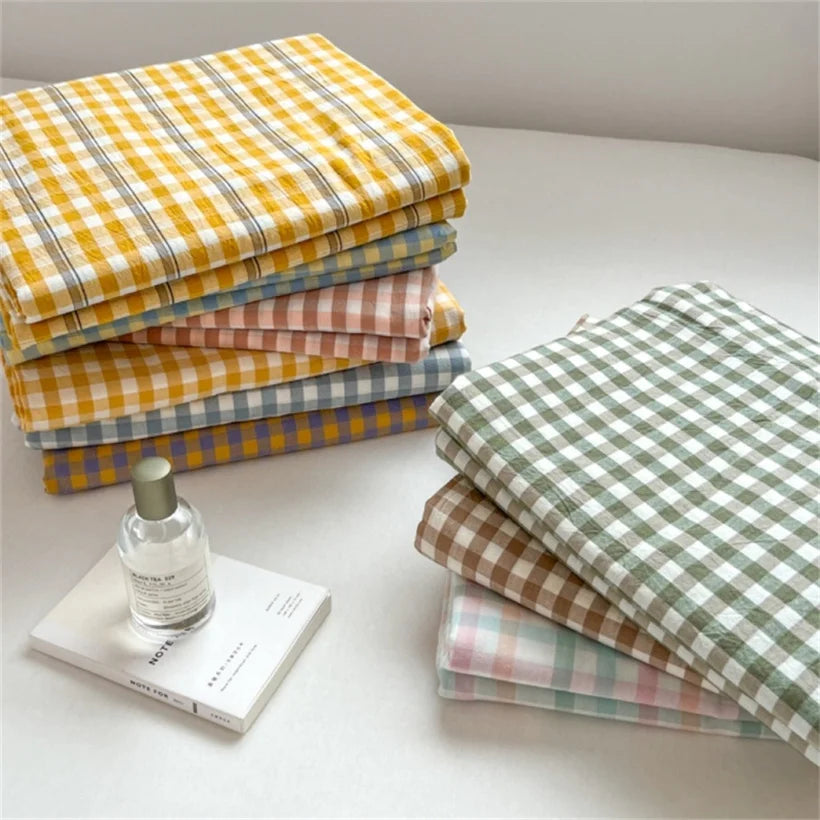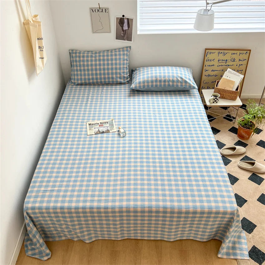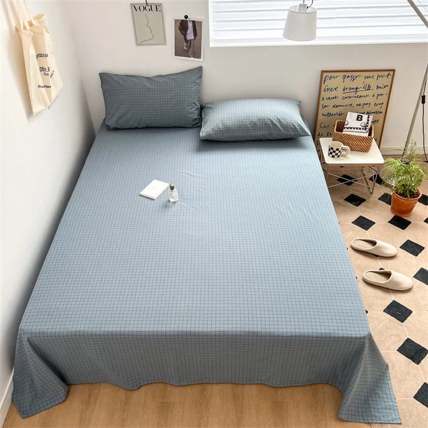 100% Pure Cotton Bedsheet 1pc Flat Sheets Nordic Grid Pattern Bed Sheet Soft Comfort Home Textile Without Pillowcase Multi-Size