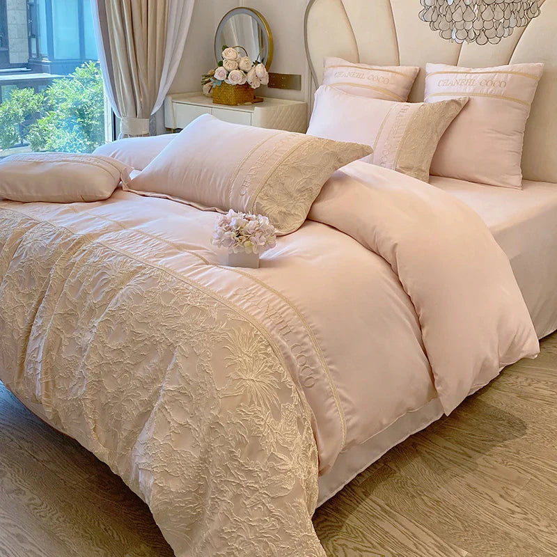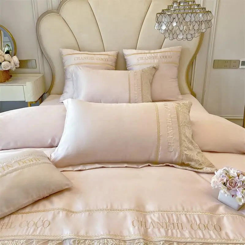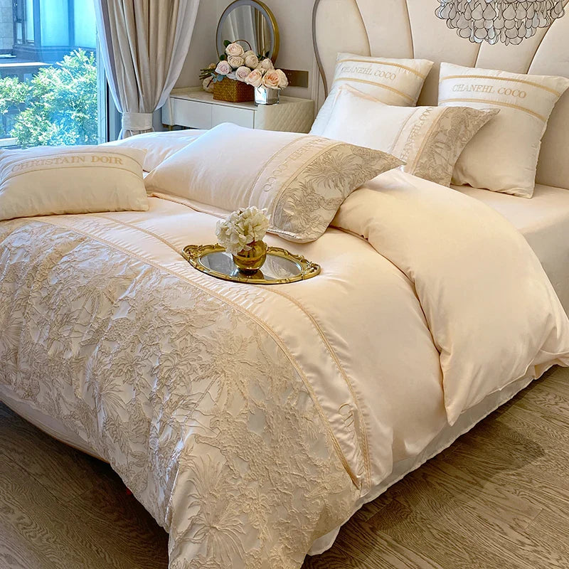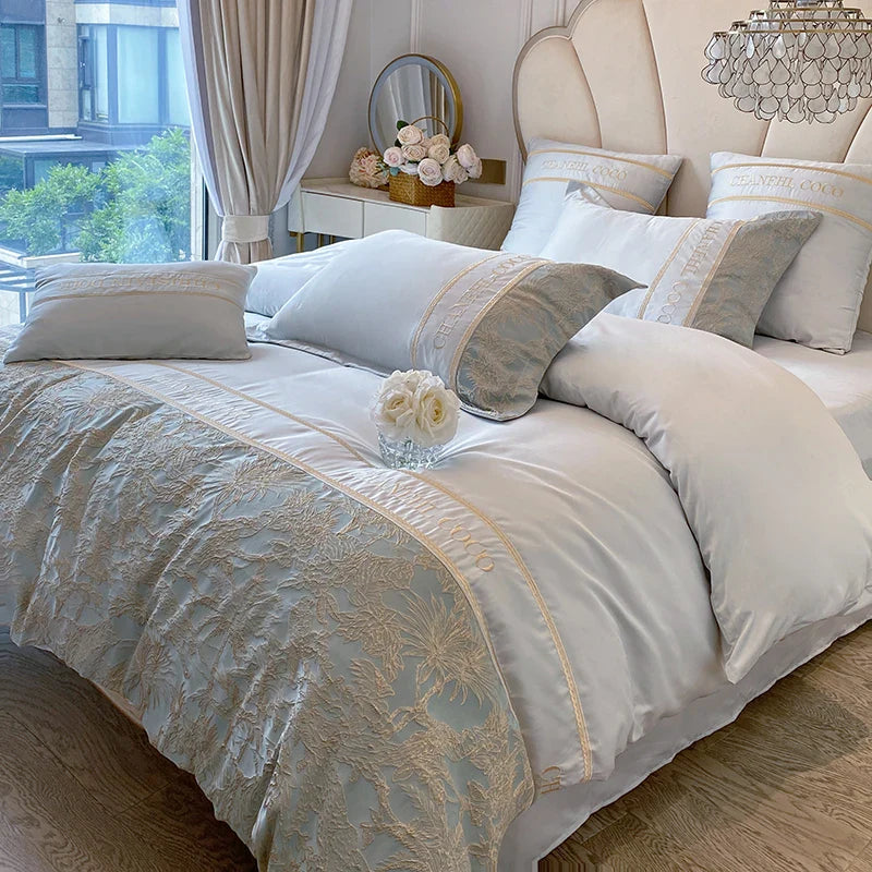 4pcs Class A High-end Long-staple Cotton Thickened Brushed Embroidery Quilt Cover Flat/fitted Bed Sheet European Bedding Set