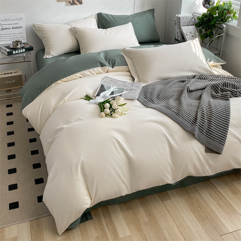 Brushed Washed Cotton Bed Set Flat Sheet Pillowcases Quilt Cover Bed Linen Peach Duvet Covers For Girls