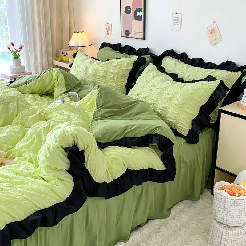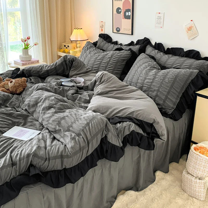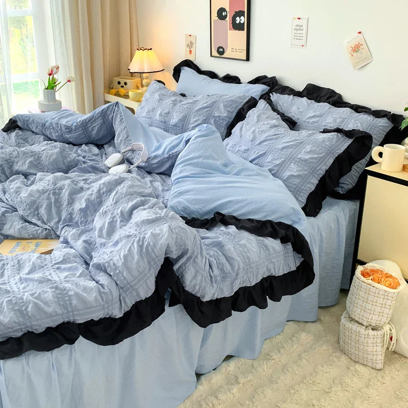 Bubble Yarn Seersucker French Style Princess Lace Bedding Set Duvet Cover Set Skirt Sheet Queen For Girl Decor Home