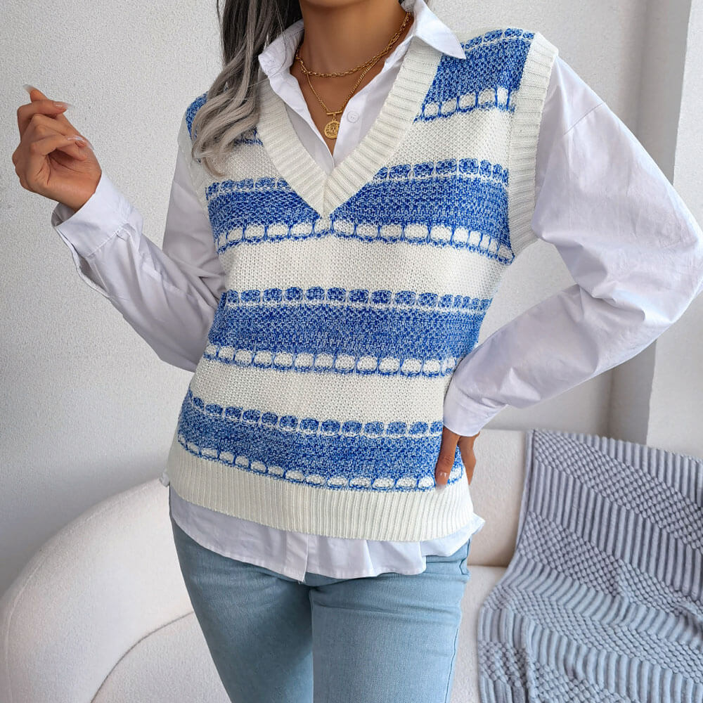 Marled yarns bring out the texture of this medium-weight sweater vest in a regular profile you'll love. Made from 100% acrylic fabric. the V-neck vest will keep you warm while still making you stand out as the layering piece will get some serious styling points for your button-ups or turtlenecks. Knitted with horizontal striped pattern in contrasting hues. this V-neck vest is cut in a relaxed regular fit. perfect for layering up to lock in warmth during the cold winter days. It has endless possibilities for styling everyday outfits.