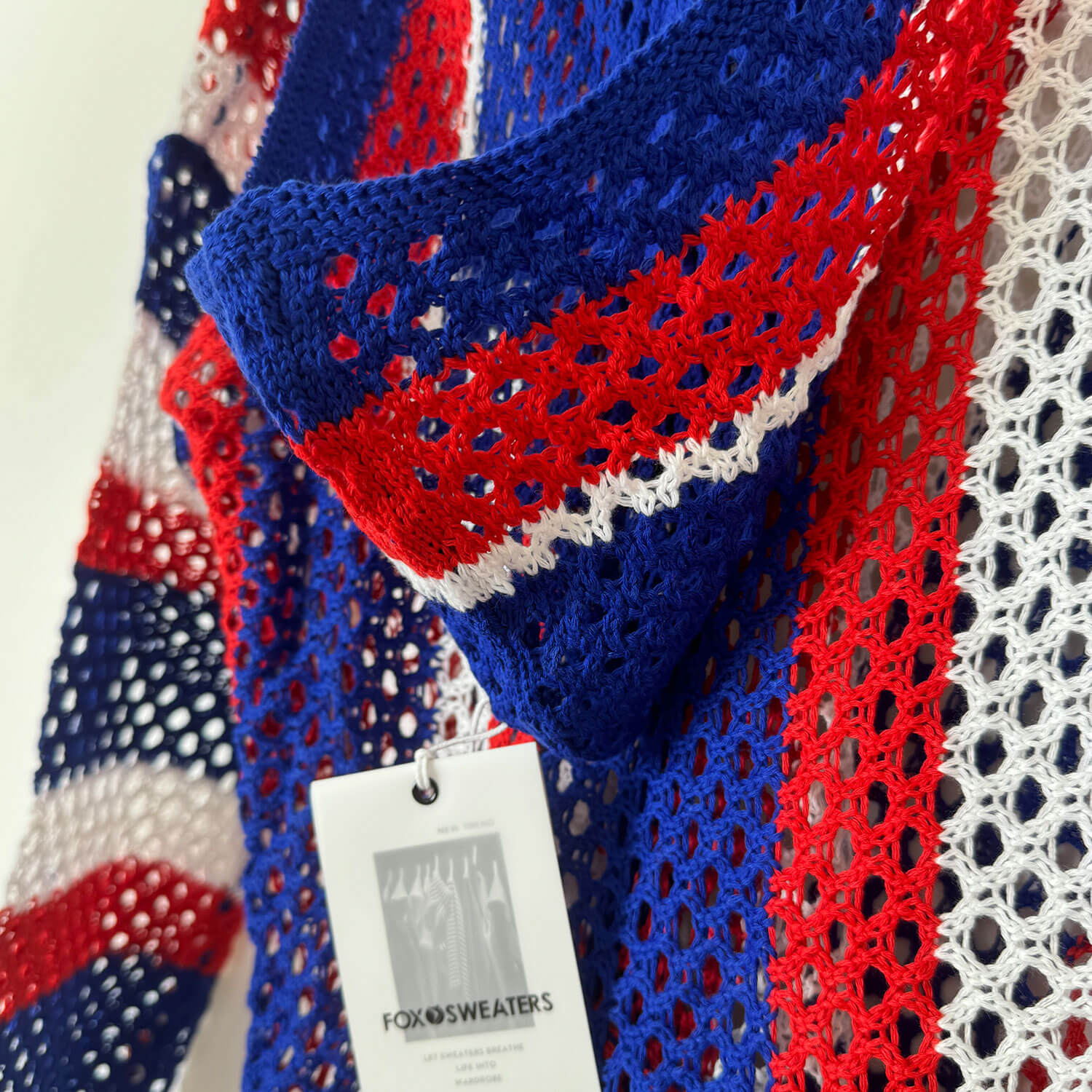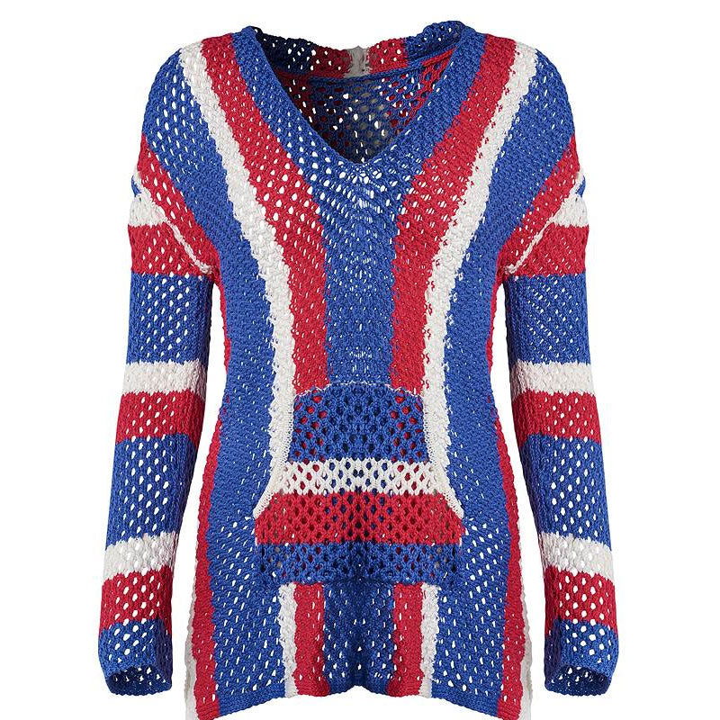 A splendid mix of blue. red and white. the easy silhouette is cut from acrylic fabric with just the right amount of slouch. The crocheted look is enriched by the open-stitching construction. which will be a perfect match for your beloved bikinis. The hoodie back. patch pocket to the front and long sleeves with drop-shoulder silhouette imbue a sporty take on the sheer trend. Take it to your next vacation and top it upon your favorite bikinis. the mini dress will surely add a free-spirited energy to your holiday.