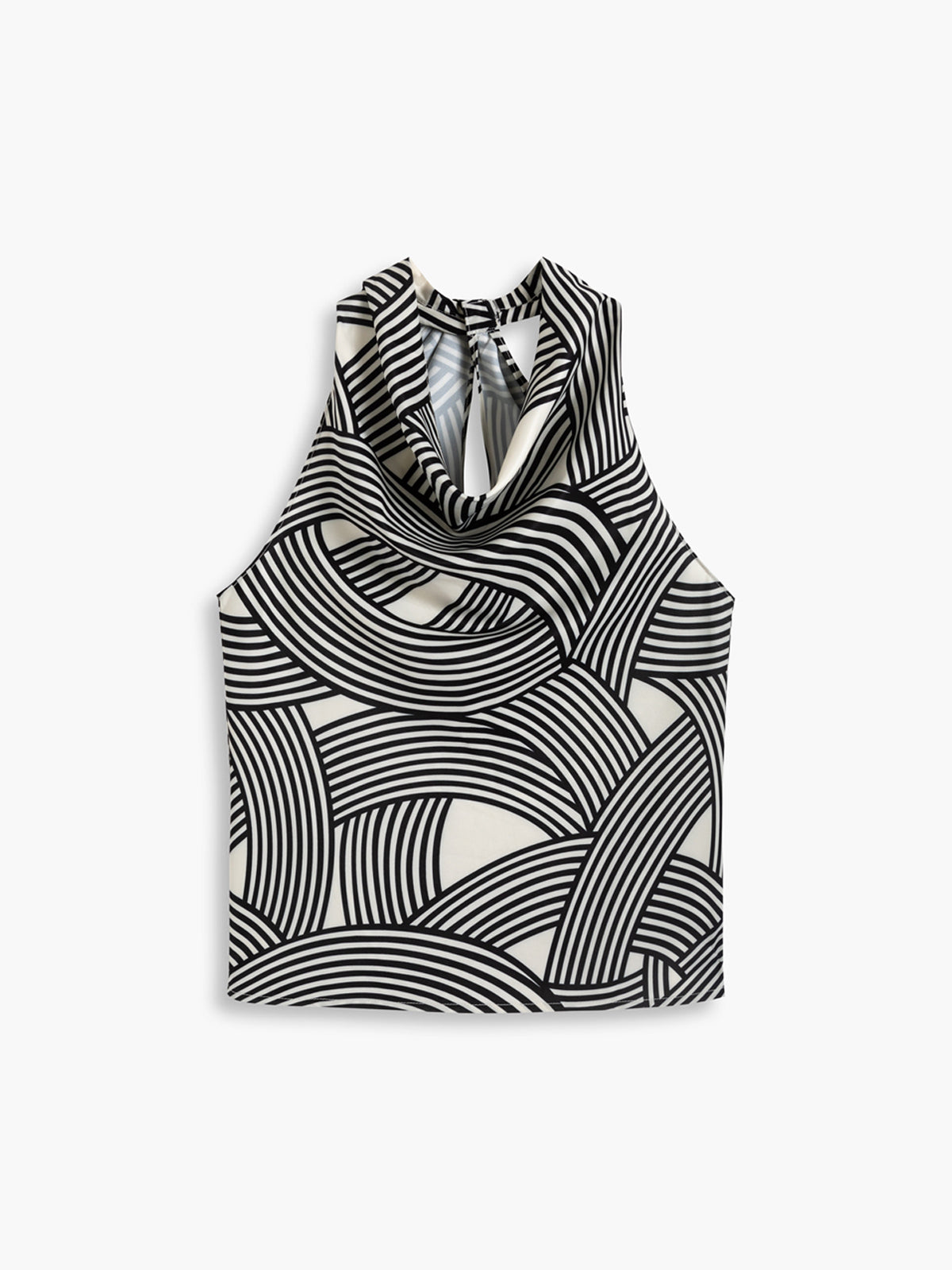 Criss Cross Stripe Cowl Neck Satin Tank Top