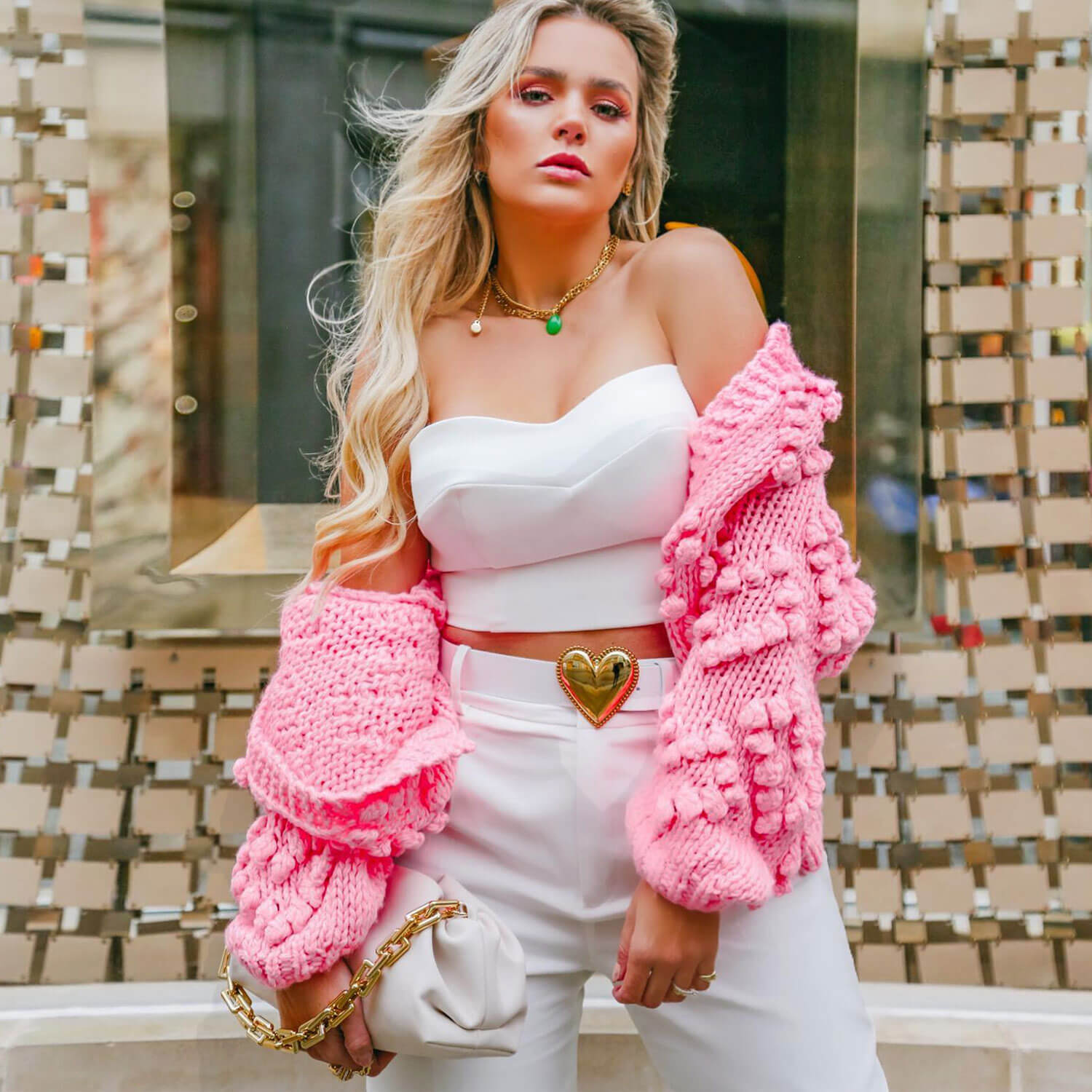 Hand-made for an ultra-soft and comfortable handle with chunky yarns. this cardigan is in a relaxed cut with super cute heart-shape popcorn pattern throughout. The crew-neck design and open-front placket make it a versatile piece for easy layering. You'll love the structured ribbed trims tracing along the neck. cuffs and hem. making for a lasting comfort that can be worn year after year. Available in all the different colors to choose from. this cardigan is a true definition of cute and high-craft. For added warmth. layer it up over your fitted top and opt for denim jeans to add a cozy-chic vibe.