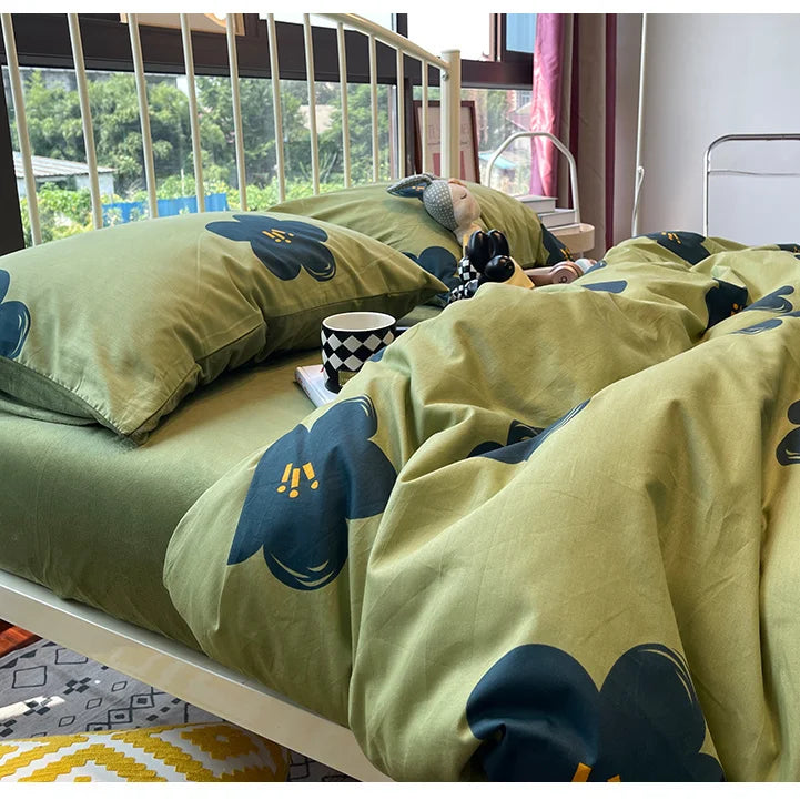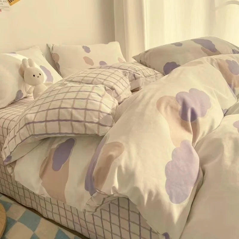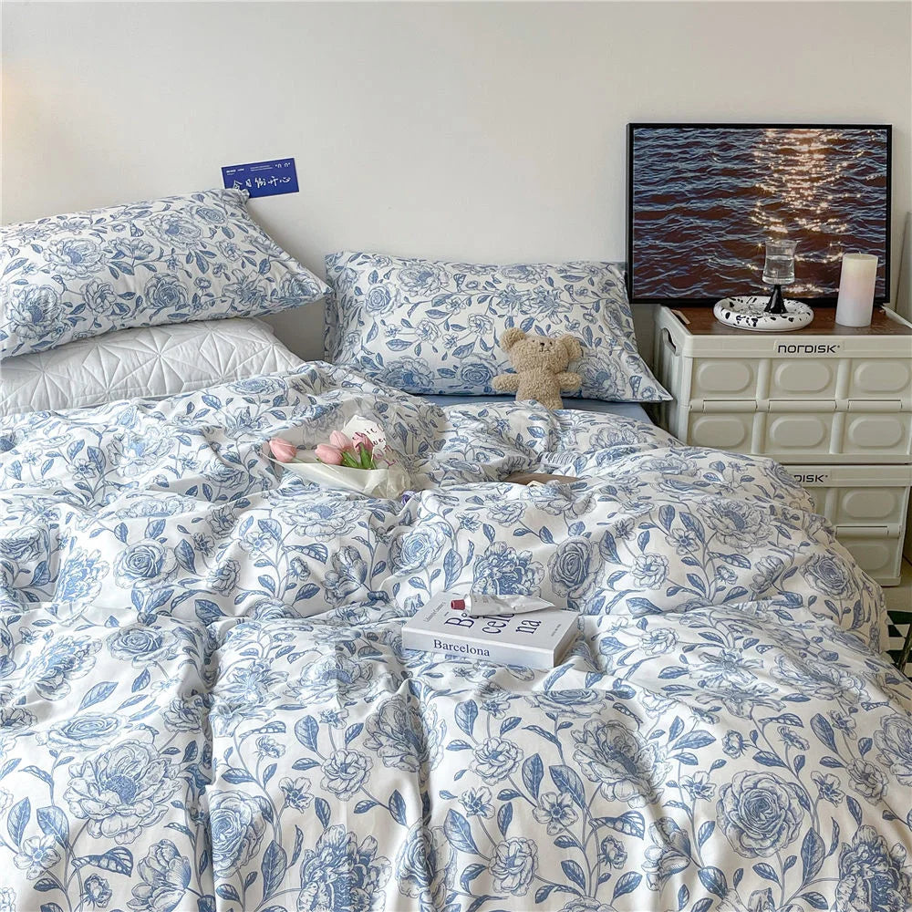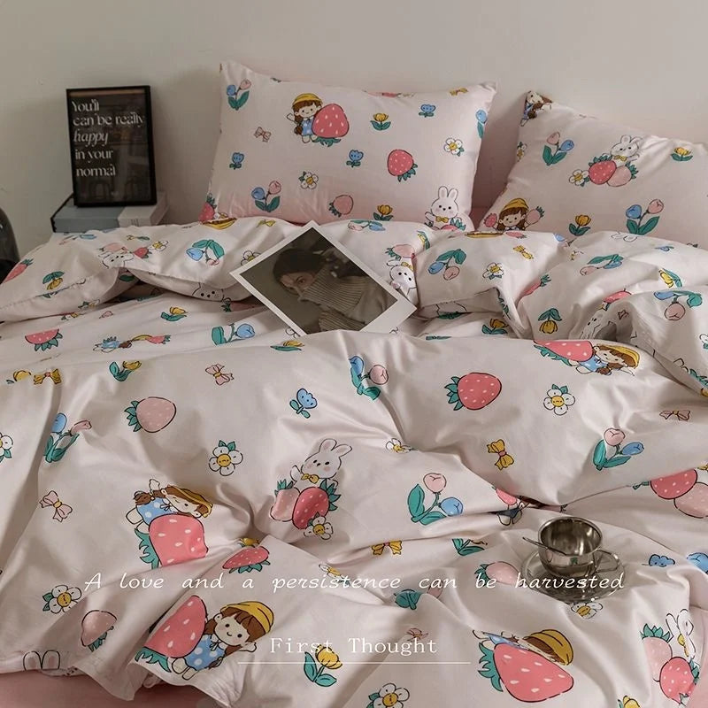 Fashion Style Pink Bedding Set Soft Flower Duvet Cover Pillowcase Bed Flat Sheet Set For Girl Women Twin Full Queen Bedclothes