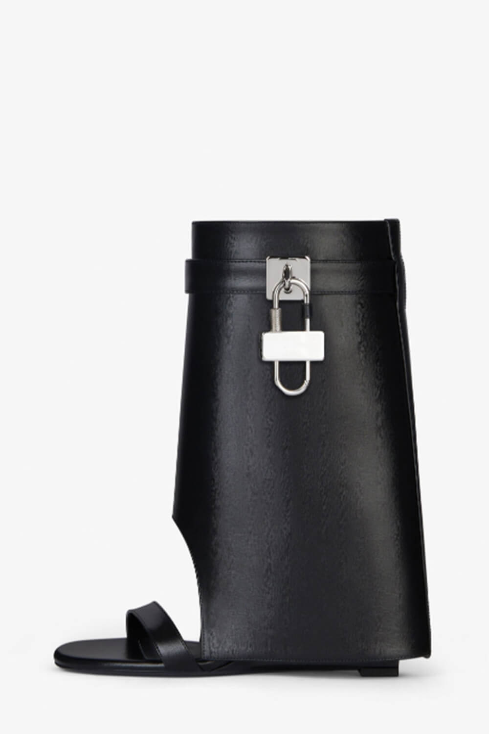 Decrease quantity for Leather Padlock Folded Cutout Wedge Heeled Sandals - Black