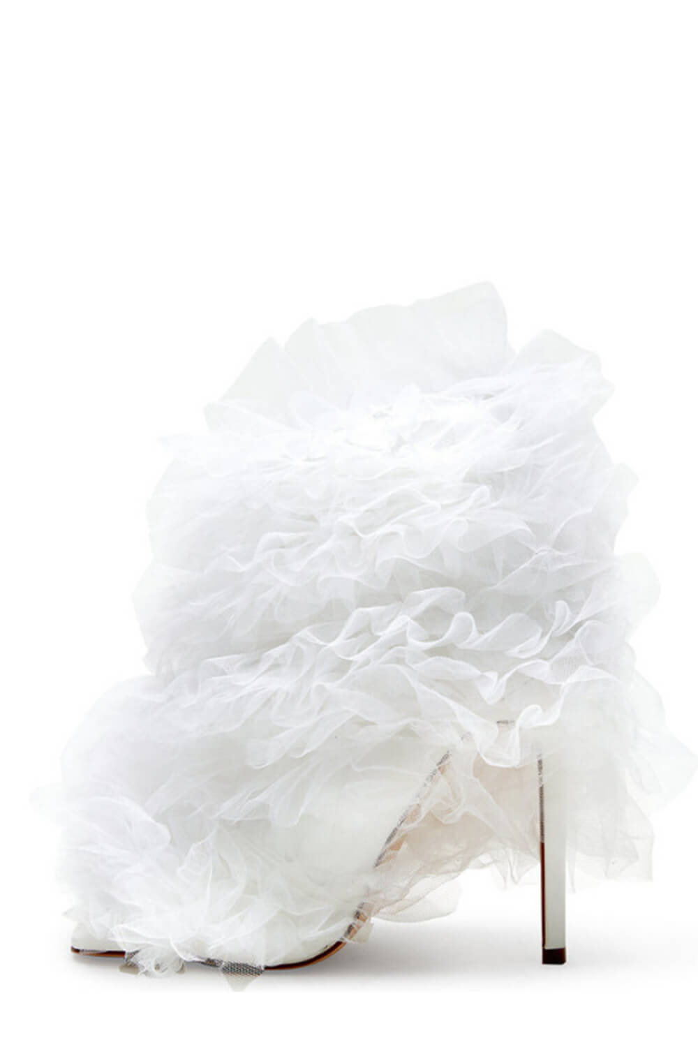 Tulle Square Peep Toe Stiletto Heeled Boots - White