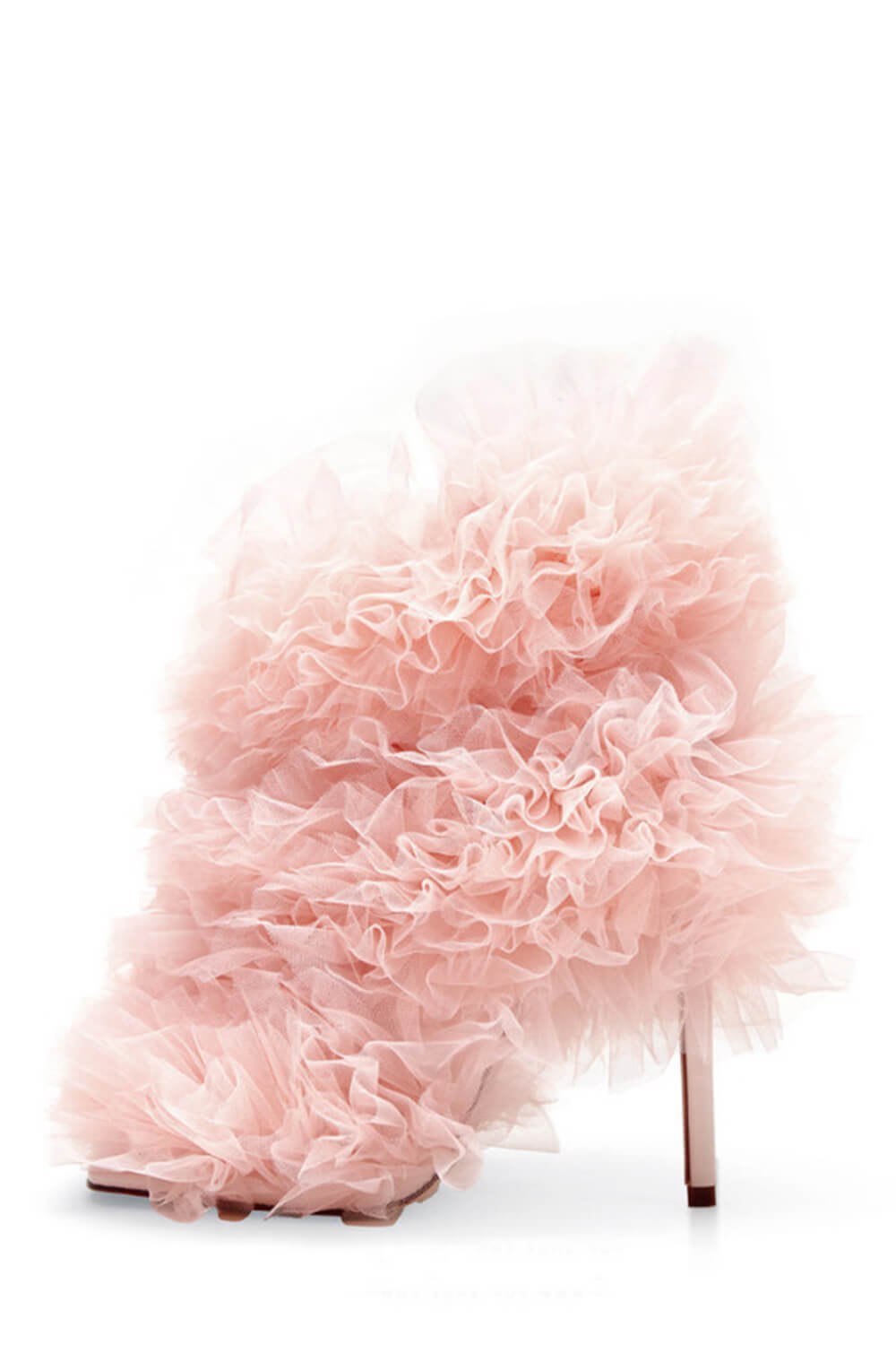 Tulle Square Peep Toe Stiletto Heeled Boots - Pink