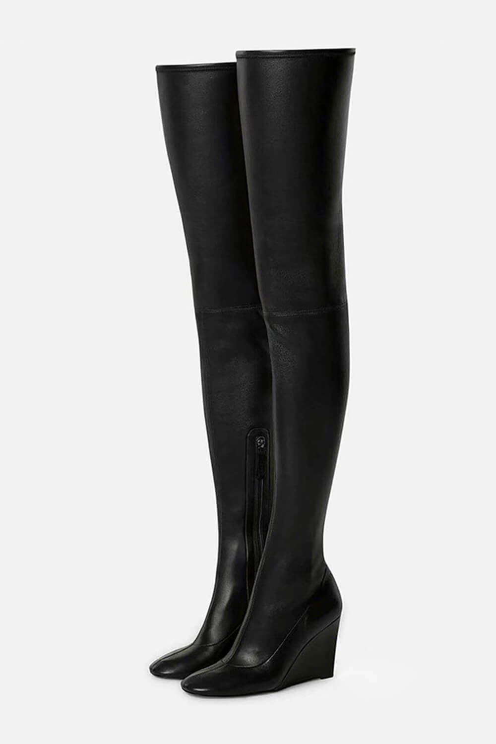 Decrease quantity for Faux Leather Round Toe Over-The-Knee Wedge Heeled Boots - Black