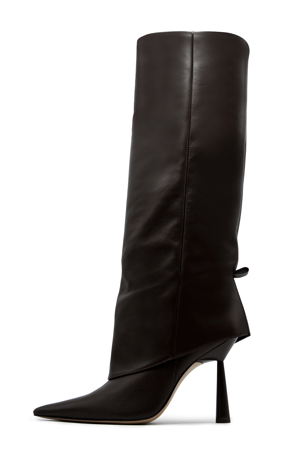 Decrease quantity for Faux Leather Folded Over Heeled Knee High Long Boots - Chocolate