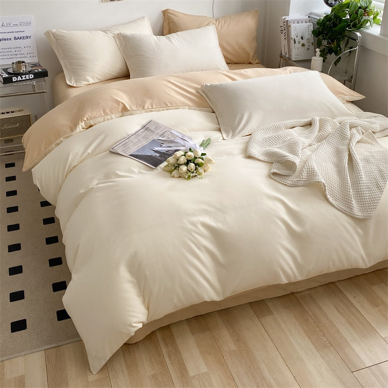 Girls Bedding Sets Kawaii Seersucker Bed Sheet Pillowcase Solid Color Duvet Cover Cute Home Decoration