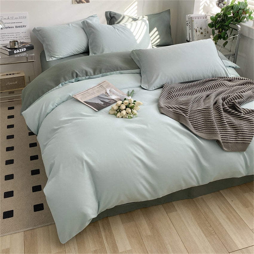 heart four-piece Brushed Washed Cotton Green Bed Set Flat Sheet Pillowcase Quilt Cover Bed Linen Flower Duvet Covers