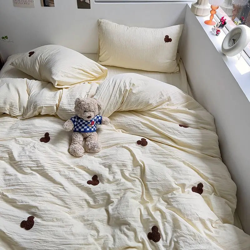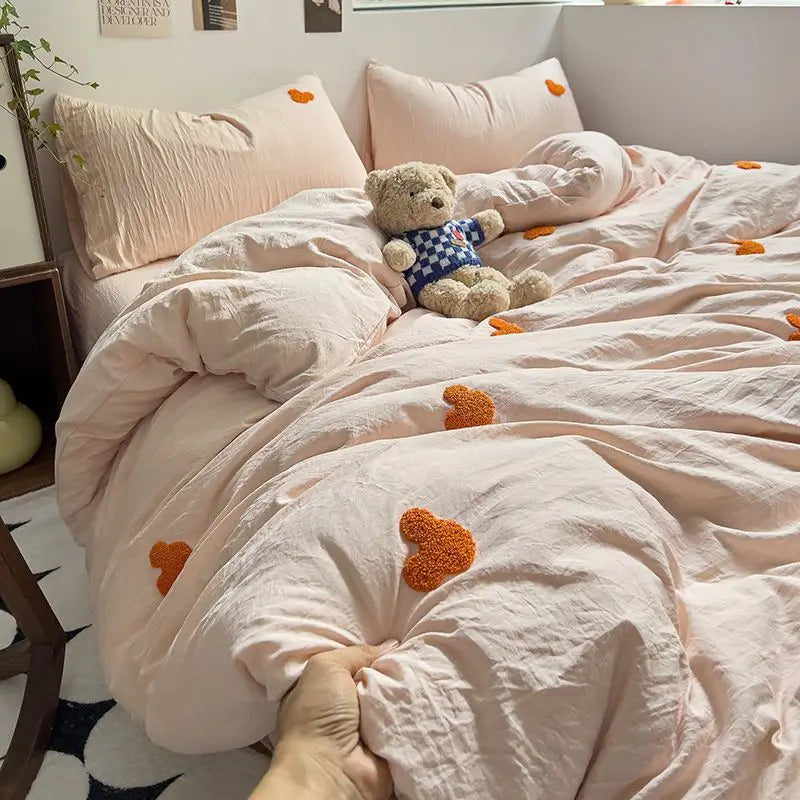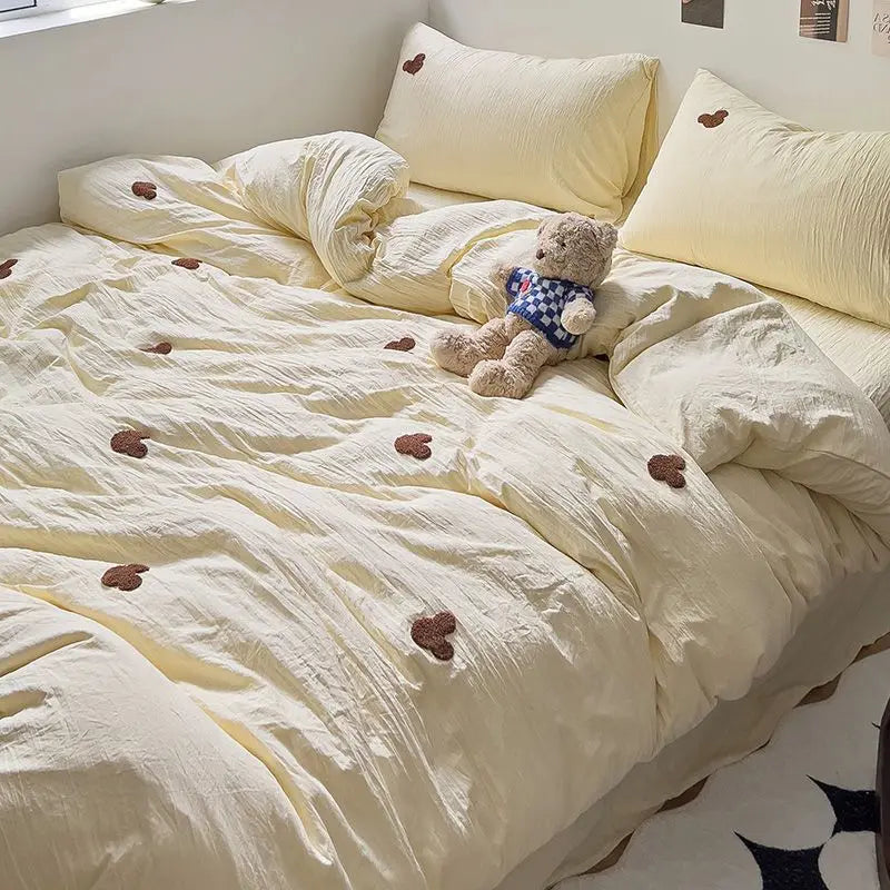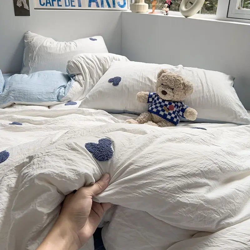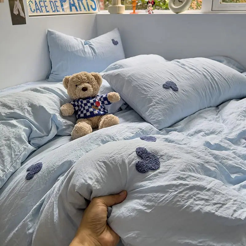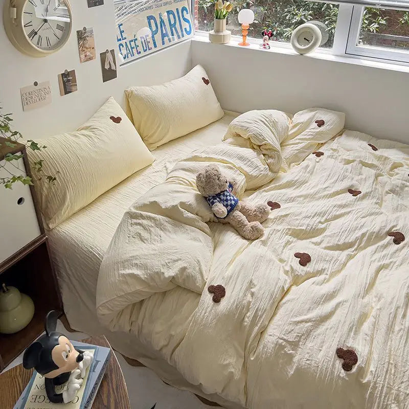 High Quality Beauty Bedding Set Cute Towel Embroidered Girl Heart Bed Sheet Student Dormitory Bed