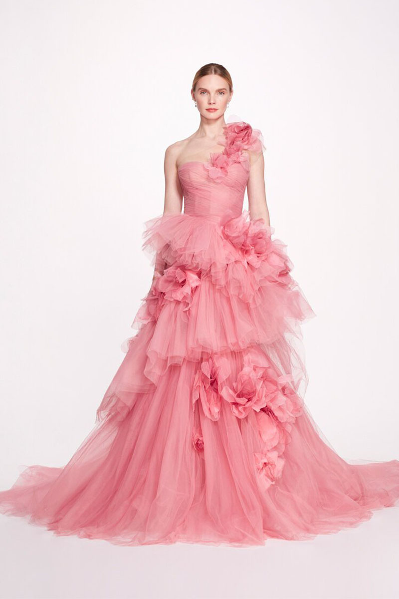 Shine for the evening and forever with the Isabella One-shoulder 3D Floral Soft Tulle Gown! Soft tulle over a poly lining shapes this eye-catching slim fit dress that has a asymmetric neckline. 3D floral details and floor length tiered maxi skirt with sweep train. Hidden back zipper/clasp.