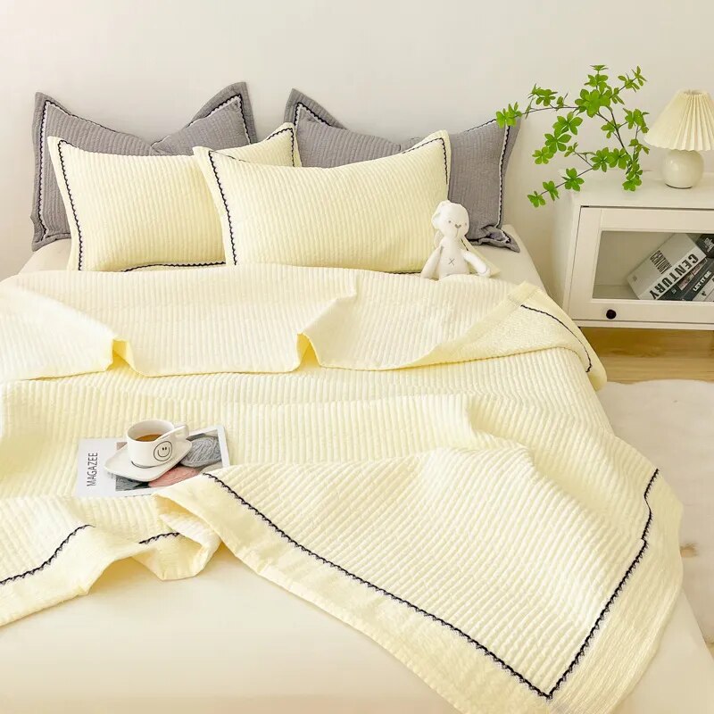 Korean Bubble Yarn Summer Blanket for Double Bed Breathable Thin Comforter Set Machine Washable Quilt 3 Pcs Set or Single Quilts