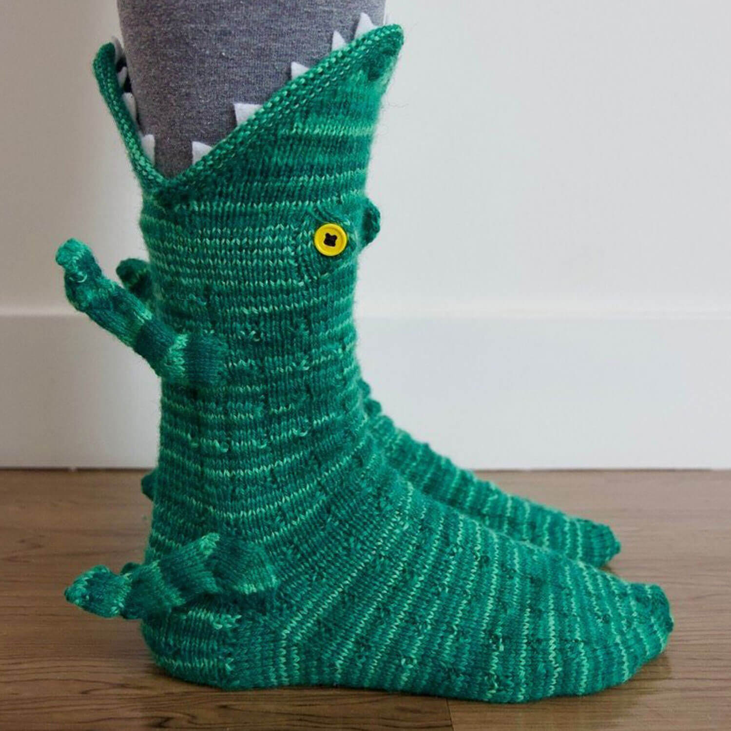 As the temperatures dip and snowflakes grace the ground. our funny animal socks ensure that your feet stay both snug and stylish. Crafted with meticulous crochet details and marled knit patterns. they feature a humorous animal bite design that's guaranteed to inspire smiles and laughter throughout your holiday gatherings. Whether it's the whimsical green crocodile. the cheerful yellow chameleon. or the playful gray and white shark. each design adds a unique touch to your winter look. As the snow falls. let your feet bask in warmth while your style continues to shine brilliantly.
