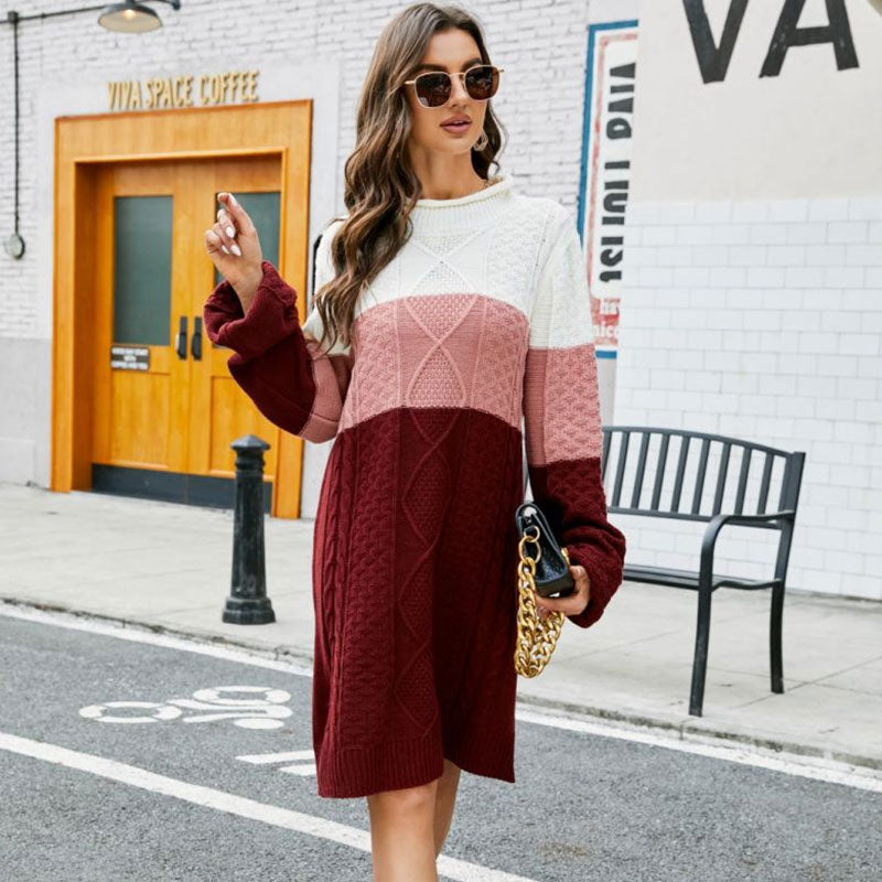 Our fisherman mid-weight knit dress is a cozy haven for winter relaxation. This Nordic-inspired ensemble boasts a comforting roll mock neck. long sleeves with cuffs. and a semi-loose fit that gracefully falls around the knee in ribbed length. Embracing captivating textural patterns. especially intricate cable knit detailing. it exudes the charming allure of Nordic styling. Presented in color blocks and crafted from a blend of acrylic and polyester. this knitted dress effortlessly merges warmth with style.