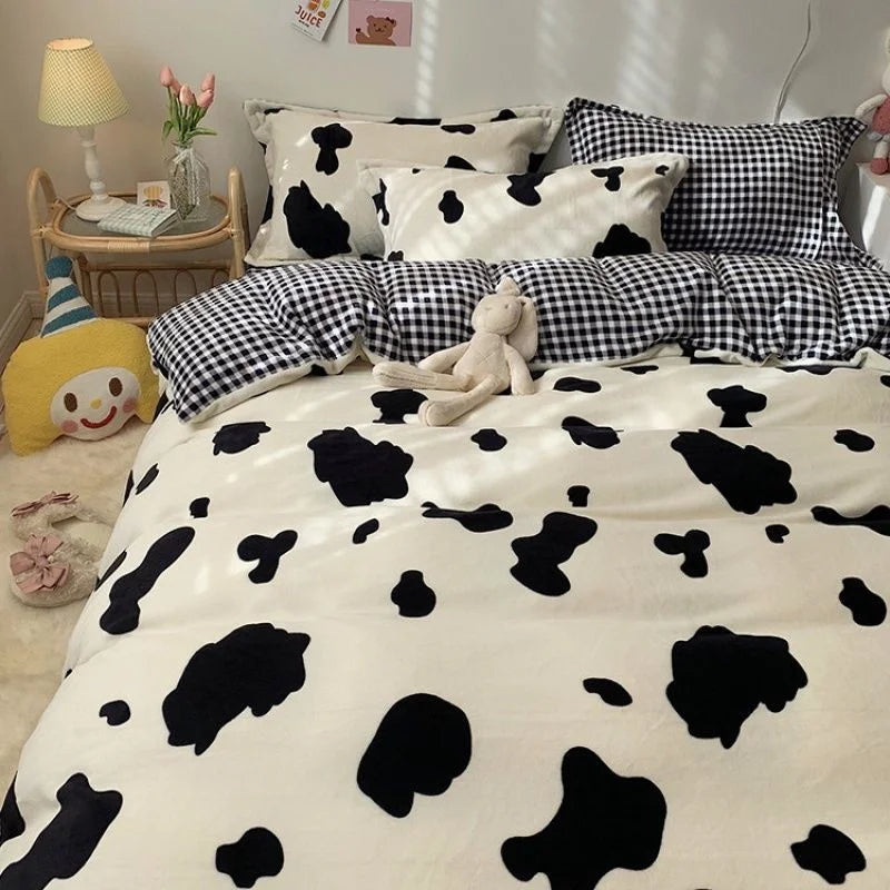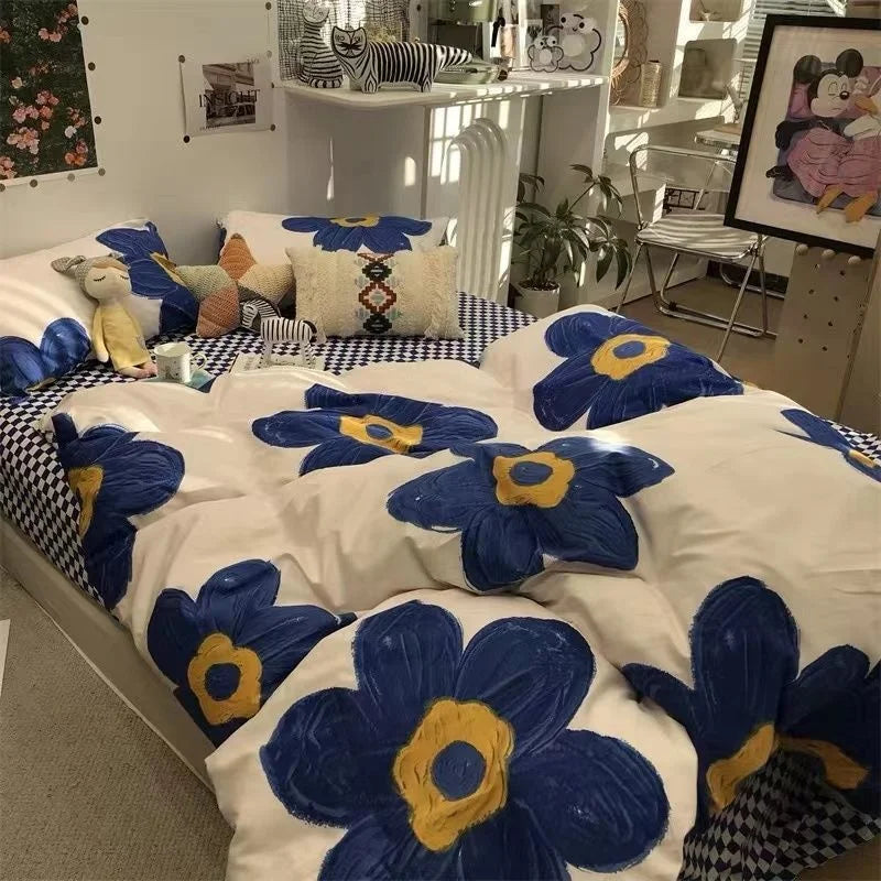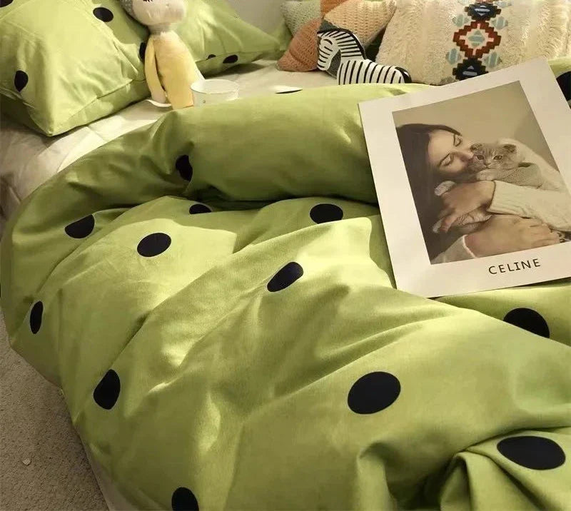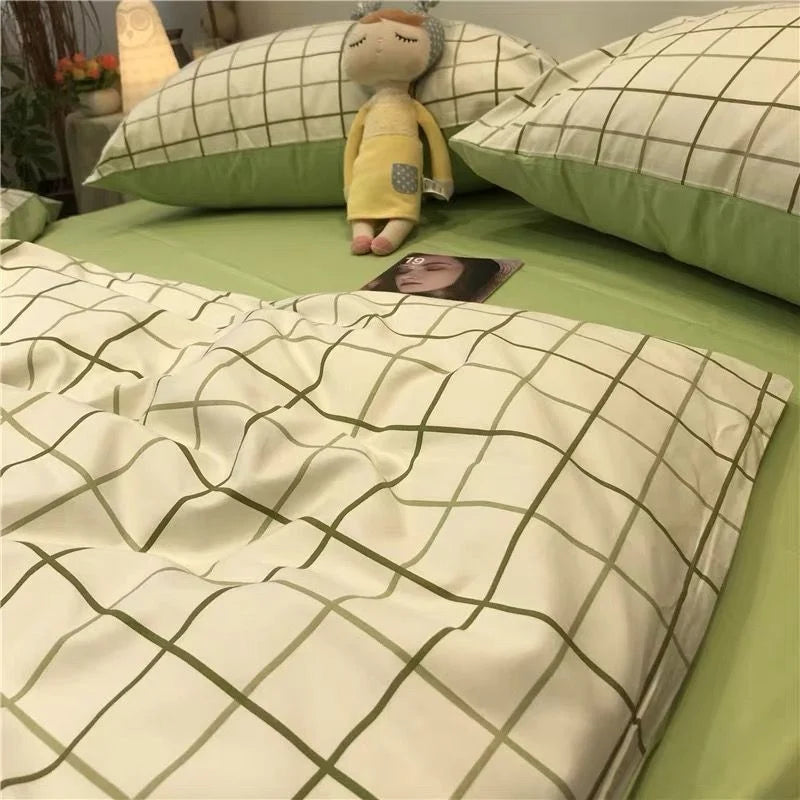 Nordic Simple Small Check Dark Green Bedding Set Soft High Quality Quilt Cover Polyester Aesthetic Bed Sheet With Pillowcases