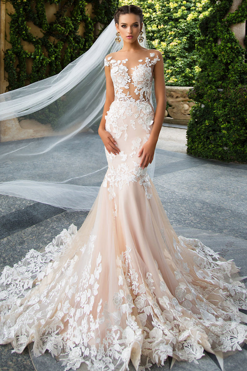 Commemorate the love of your life with elegance in the Promised Love Lace Mermaid Wedding Dress! Fabulous fit and flare wedding gown made of stunning lace appliques and tulle. 3D lace pattern decoration make this dress luxurious and irresistible. Beautiful back of the dress is opened and zipped. and has a long train.