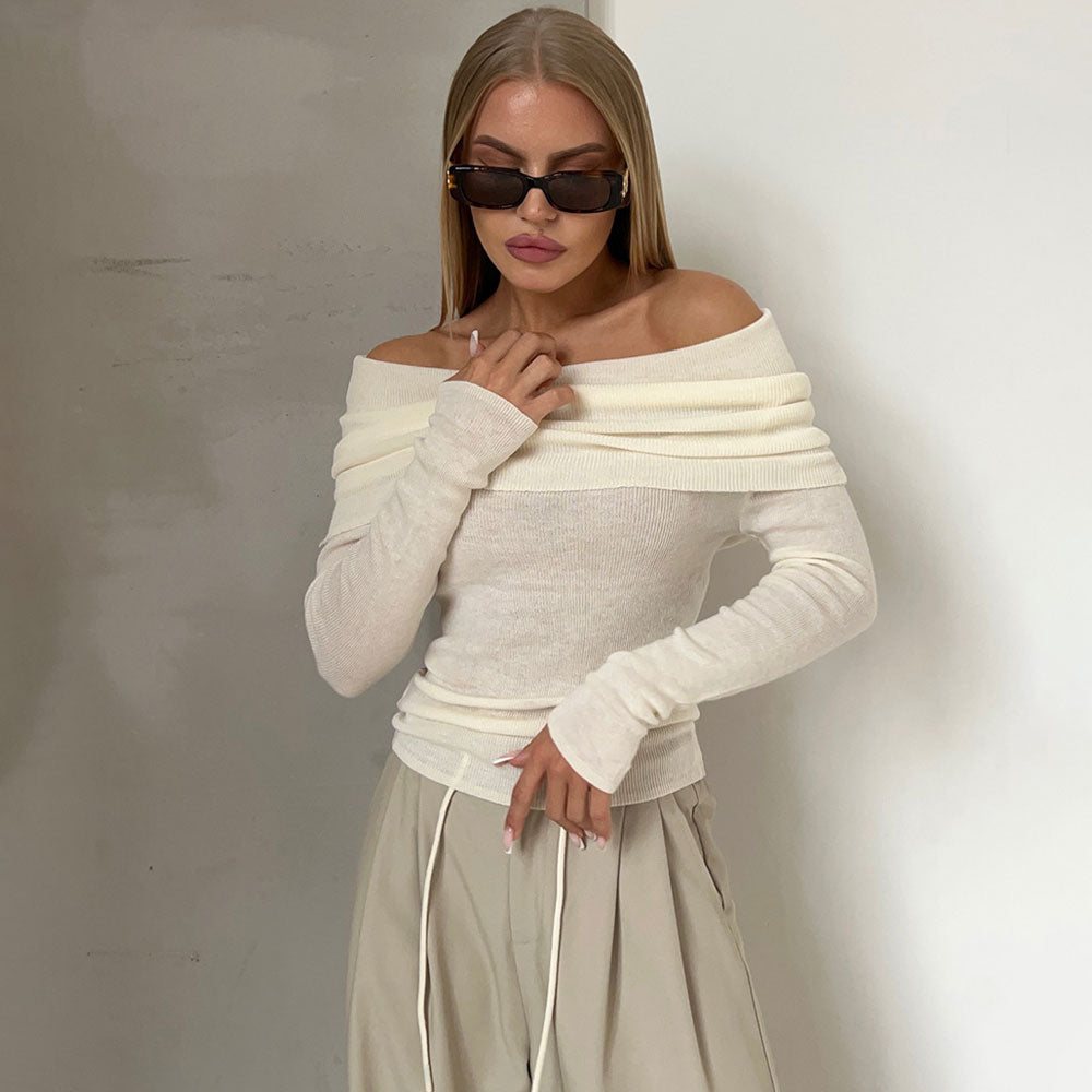 Get ready to amp up your Spring/Summer sass with our skin-baring pullover �the ultimate flirt in your wardrobe! Its straight neckline's got a magical fold-over twist that effortlessly oozes 'sexy'. Sporting long sleeves and a blend of cotton. acrylic. and wool. it's your cozy cocktail with a touch of luxe. Plus. it's semi-sheer �flaunt without freezing! Available in White. Wheat. Black. Light Green and Fuchsia. this sweater's your palette come alive. Whether strutting streets or lounging indoors. charm the season away. Summer just got a flirtatious and seriously cozy upgrade!