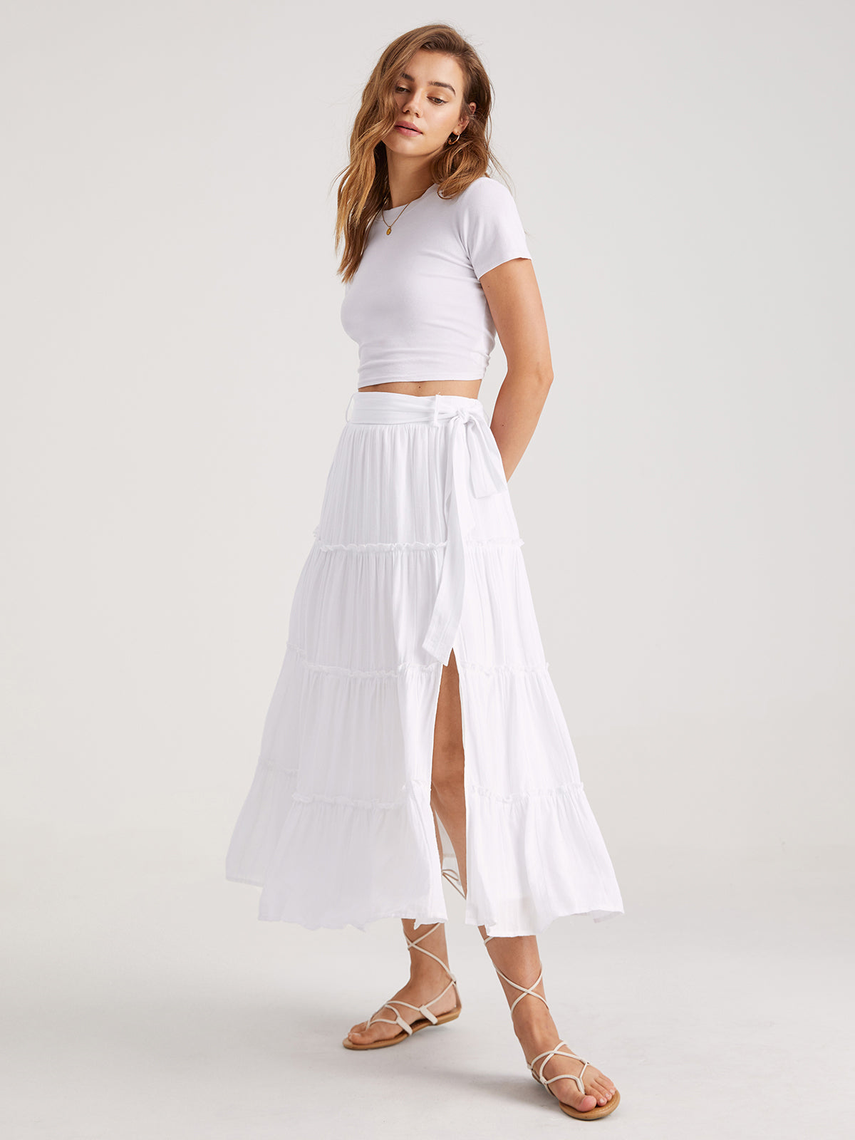 Solid Colored Tiered Maxi Skirts