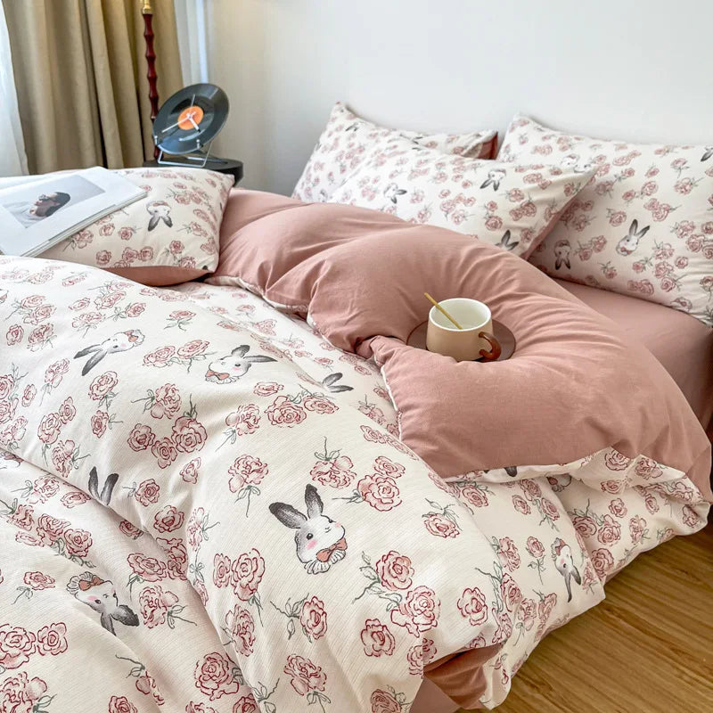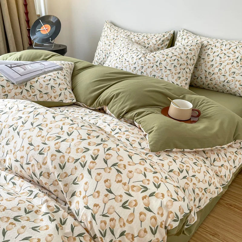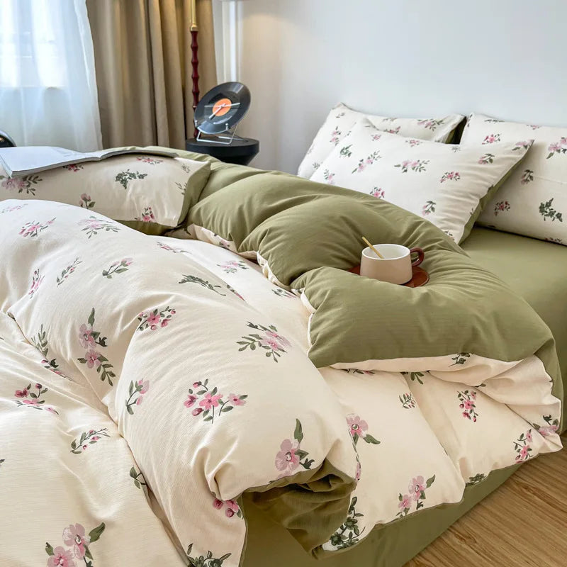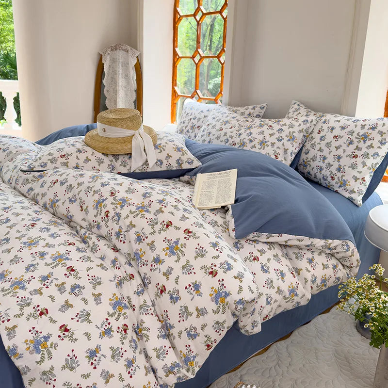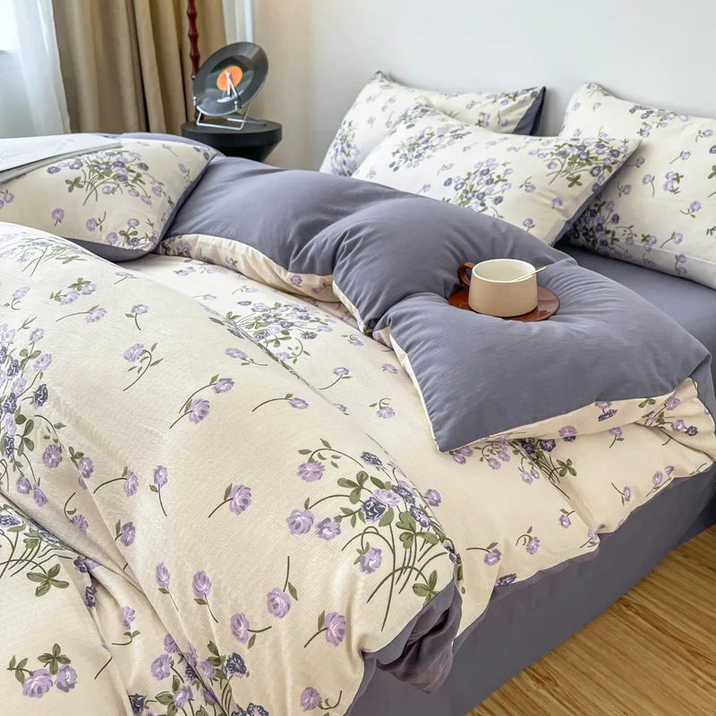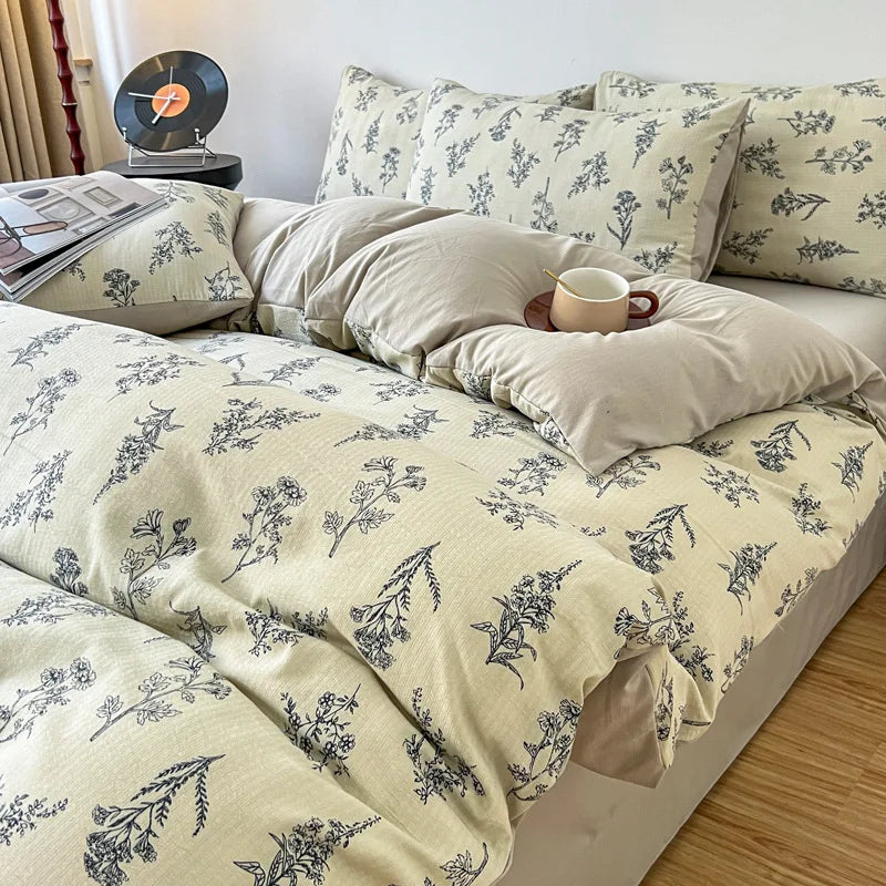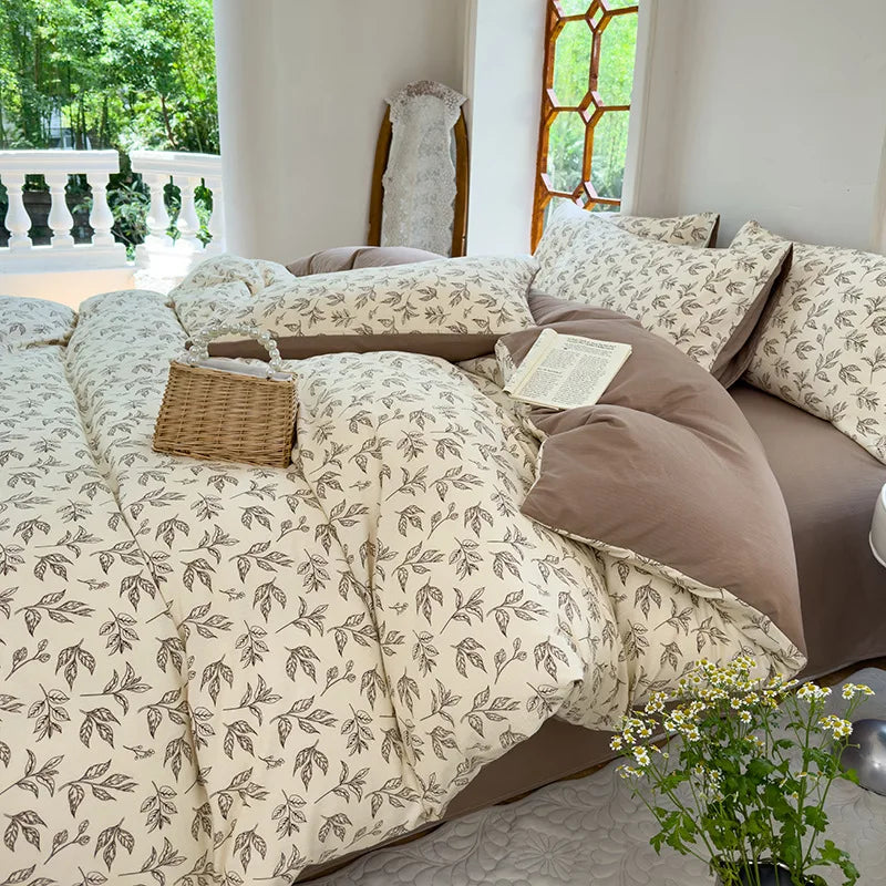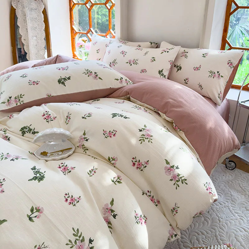 Vintage Floral Style Bedding Set No Filler Soft Fall Winter Thickening Duvet Cover Flat Sheet Pillowcase Full King Bed Linen